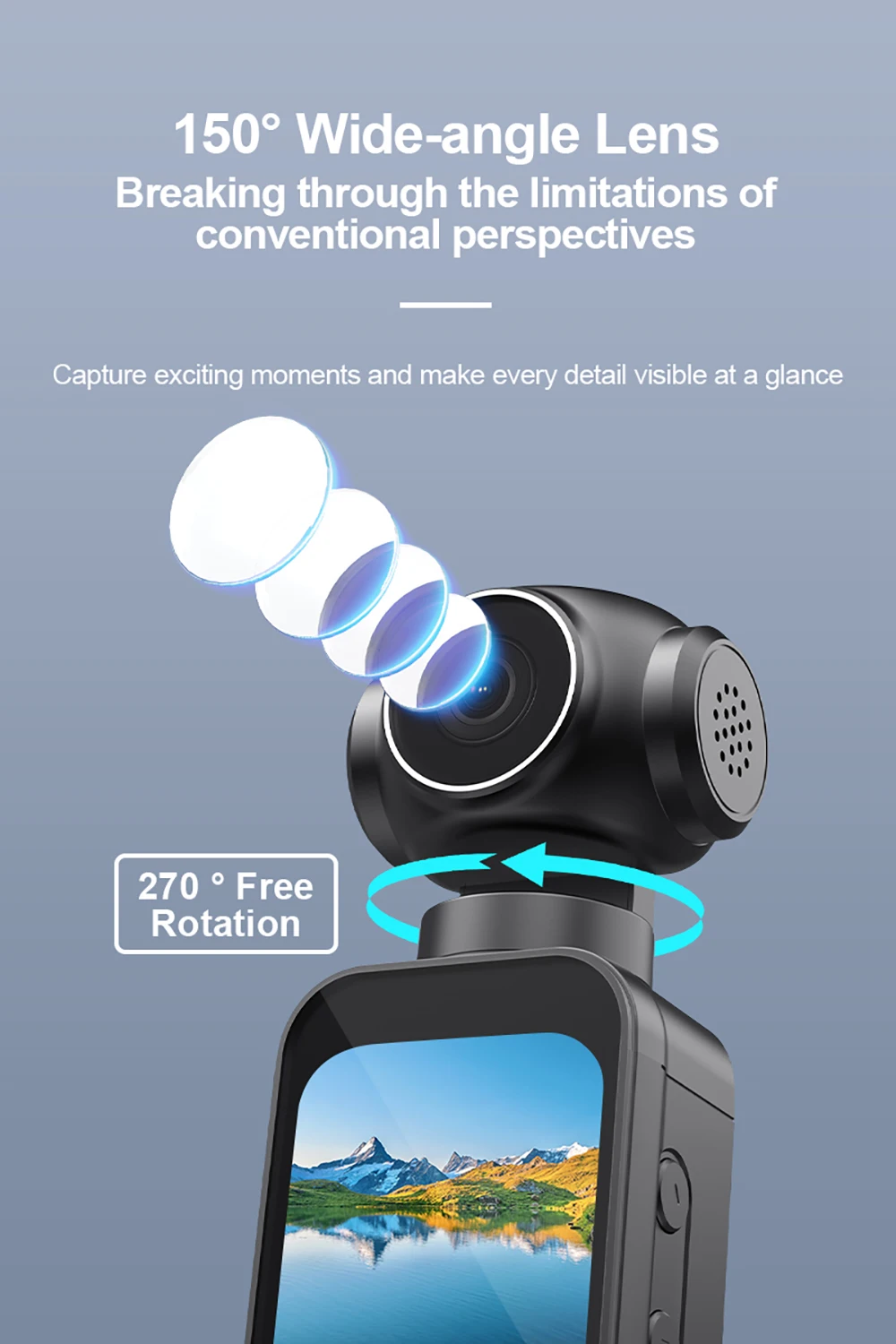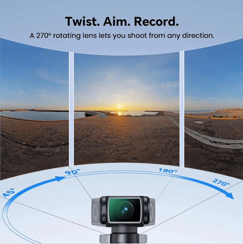 ► Taking video and photo for anywhere,270° rotatable for multi-angle shooting.
