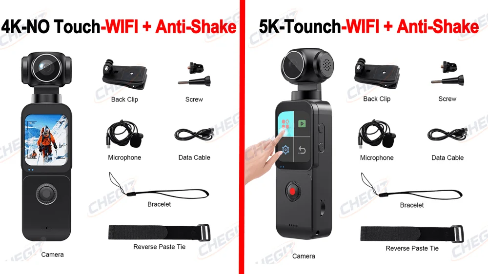 1.69" 4K/5K Ultra WIFI or Touch Screen Pocket Action Camera 270° Vlog Mini Sports Cam Helmet Travel Bicycle Driver Recorder