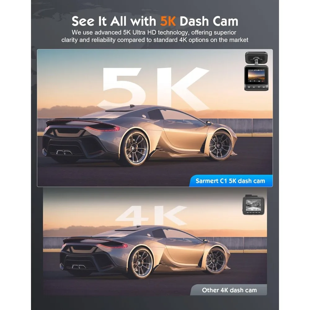 Sarmert C1 5K Dash Cam Front - Built-In GPS and 5G Wifi, Sony STARVIS Sensor, HDR Night Vision Car Camera, 5K/4K/2.5K UHD Dash C